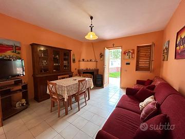 La villa si sviluppa su due livelli, con una superficie interna di 55 mq. Al piano terra si trova un ampio giardino di circa 40 mq che ci conduce all'ingresso su un accogliente soggiorno con camino, ideale per trascorrere piacevoli serate in compagnia di amici e familiari. La cucina, separata dal soggiorno, è spaziosa e luminosa, ed affaccia sul cortile retrostante di circa 20 mq. Un bagno con lavatrice completa il piano terra.