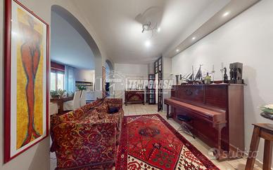 L'ingresso introduce a un soggiorno di rappresentanza di generose dimensioni, inondato di luce naturale, ideale per ricevere ospiti o vivere momenti di convivialità in un'atmosfera elegante e raffinata.