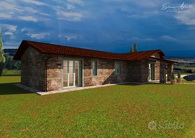 Il casale, di circa 125 mq, si sviluppa su un unico livello offrendo massima funzionalità e comfort. L'abitazione è caratterizzata da un accogliente portico di ingresso che introduce nella zona giorno con soggiorno e angolo cottura ben integrato. La serra solare, caratterizzata da ampie vetrate, regala luminosità naturale e continuità tra interno ed esterno, creando un ambiente unico e suggestivo.