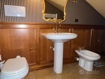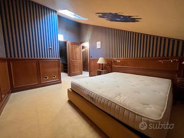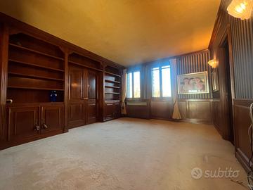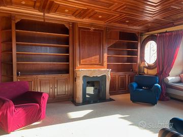 Interamente arricchito con mezza boiserie a tutte la pareti, librerie e armadi in pregiato legno di ciliegio, così come il soffitto con cassettoni inglesi, 3 bagni rivestiti in marmo giallo reale, con sanitari e lavabi di manifattura inglese, vasca idromassaggio, doccia con sauna, locale lavanderia arredato e attrezzato