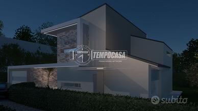 La villa offre una superficie interna distribuita su due livelli. Al piano terra si sviluppa una luminosa zona giorno composta da un ampio soggiorno con cucina open-space, ideale per chi ama spazi ariosi e conviviali. Sullo stesso livello si trovano due camere da letto e un bagno di servizio, per chi desidera la cucina abitabile c'è la possibilità di adattare gli ambienti secondo le proprie esigenze. Sempre al piano terra è presente un box doppio di 30 mq, comodissimo per auto e deposito.