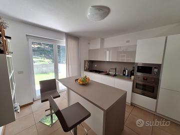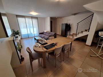 A Maniago in zona tranquilla ed immersa nel verde a pochi passi dal centro del paese, con vista panoramica, vendesi villette a schiera di recente costruzione e di generose dimensioni. Le abitazioni si sviluppano su due piani più lo scantinato. Lo scantinato è seminterrato ed è composto da una corsia di manovra molto larga, garage doppio, e cantina di generose dimensioni finestrata. Piano primo corridoio esterno di ingresso alle abitazioni, con terrazzo di pertinenza esclusiva e possibilità di posizionamento tavolo esterno, ingresso grande zona soggiorno-pranzo, cucina abitabile, antibagno e w.c.-lavanderia, giardino retrostante di pertinenza esclusiva. Piano primo composto da tre camere ampie, bagno padronale e secondo bagno con vasca e doccia. Terrazza coperta. Ottime finiture. Molto interessante.
