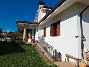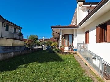 Piano primo con possibilità di accesso autonomo formato da due camere matrimoniali, bagno ed ampia terrazza coperta. Scantinato con locali uso garage (di ampie dimensioni), depositi, lavanderia e taverna. Giardino completamente recintato con accesso pedonale coperto e doppio accesso carraio. Ottime condizioni.