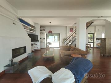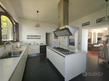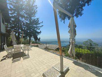 ROCCA DI PAPA. Panoramica, prestigiosa, riservata, unica nel suo genere, villa unifamiliare di mq 900 circa articolata su tre livelli dotata di tutti i confort e accessoriata di un ampio e curato parco di 5000 mq circa adornato da alberi ad alto fusto. La villa che ha subito di recente un restyling si inserisce straordinariamente nel panorama esclusivo che la domina, lavorando sull'involucro è stata completamente ridisegnata la geometria della struttura dando vita ad una composizione architettonica armonica e pulita dalle linee essenziali ed equilibrate; le finiture di alto pregio, i pavimenti in parquet a listoni, le sue generose dimensioni e gli interni dagli originali arredi arricchiscono l'atmosfera di privacy, confort ed eleganza. Oggi la dimora abbina alla bellezza storica i pregi della ricca modernità: salone e sale ospitali, cucine spaziose, servizi funzionali e impianti di sicurezza a norma, ampie terrazze accoglienti e suggestive con splendidi affacci sul lago di Castel Gandolfo e tutto il territorio circostante. Il piano terra ospita un'ampia area living che si apre su un grande portico, una palestra accessoriata con bagno attiguo, una sala cinema, due ampie camere da letto, altro servizio, disimpegno, centrale termica; salendo al primo piano troviamo salone quadruplo di mq 105 circa con affaccio sulla grande terrazza a livello di mq 60 circa, cucina abitabile con disimpegno, zona dispensa, doppi servizi, ampio disimpegno, tre grandi camere da letto di cui una dotata di bagno di pertinenza esclusiva. L'ultimo piano ospita una suite con bagno, con terrazza di mq 100 circa, grande disimpegno, tre ampie camere tutte accessoriate di servizio e uno studio. Nel restyling la proprietà ha cercato di ricavare ambienti moderni ed essenziali nello stesso tempo, enfatizzando l'arredo ponendo l'accento sulle tonalità più calde e sobrie del color legno conciliando l'utilizzo di materiali di ottimo livello con