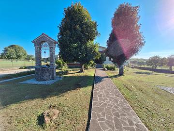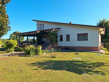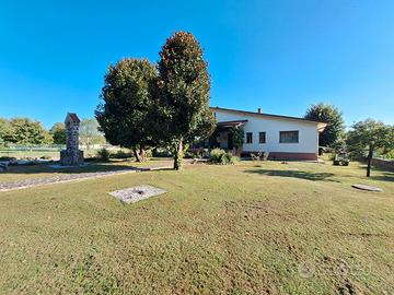 L'abitazione si sviluppa su tre piani. Al piano seminterrato trovano posto il garage, la centrale termica, un ampia zona pluriuso con lavanderia, una dispensa, un bagno, una stanza deposito ed una cantina. Il pano rialzato è composto da un ampio porticato dal quale si accede all'abitazione ed alla cucina. Troviamo poi un ampio ingresso, un soggiorno, la cucina, tre camere, un ripostiglio ed il bagno. Piano primo composto da sottotetto abitabile con due stanze ed un bagno. Ampio giardino di pertinenza recintato con accesso carraio e pedonale. Molto interessante.