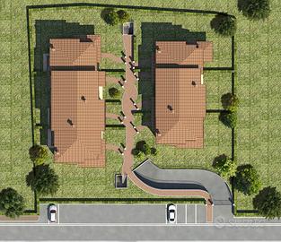 PODENZANO - VILLA D'ANGOLO NUOVA composta da soggiorno, cucina abitabile, bagno, porticato al piano terra; 3 camere da letto, bagno, terrazzo, balcone al primo piano, taverna, lavanderia, locale tecnologico, box triplo affiancato al piano seminterrato. Giardino. OTTIMO CAPITOLATO.