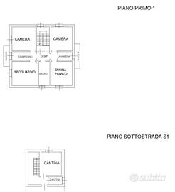 - appartamento p.1° con soggiorno, cucina abitabile, balcone, due camere matrimoniali, bagno, lavanderia con balcone, ampia cantina.