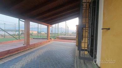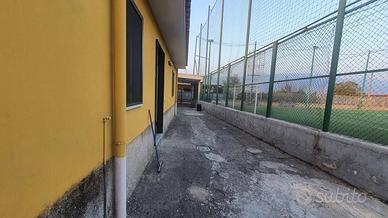 Rif:1415 (107111961) - Rif. 1415 - Villa posta su due livelli di circa mq 130, al piano terra composta da cucina, salone/sala da pranzo e bagno, al piano primo composta da due camere da letto e bagno, ampio terrazzo al primo piano e portico al piano terra, oltre a depandance; Ampi spazi esterni, con forno, in parte pavimentati ed in parte a giardino nonché due campi da calcio con annessi spogliatoi, servizi e ampio parcheggio. Il tutto all'interno di un lotto di circa 5.000 mq. - Classe: G - IPE: 175.00 kWh/mq anno