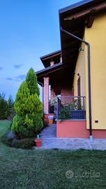 Villa di recente costruzione libera su tre lati con ambienti comodi e spaziosi. L' immobile è disposto su tre livelli. Al piano rialzato troviamo: ingresso in sala (nella quale è collocato un ripostiglio), cucina abitabile, disimpegno, bagno e lavanderia, due camere da letto di cui una con cabina armadio. Il riscaldamento è a pavimento con caldaia a condensazione. La porte interne sono a scorrimento. L' abitazione è accessoriata da climatizzatore, zanzariere, caldaia a condensazione, portoncino di ingresso blindato e impianto di allarme. Al piano primo è collocato un ampio sottotetto allo stato grezzo e disposto come locale unico dove sono state predisposte le tubazioni per acqua calda e fredda, riscaldamento e scarico, sono già presenti tre finestre. Al piano seminterrato è collocata un autorimessa di 65 mq con doppio basculante predisposto per l' automatismo. Sempre nel piano seminterrato ci sono due posti auto coperti. La proprietà è arricchita da una bel giardino privato di 280 mq circa (con impianto di irrigazione) e due balconi uno a nord con portico e l' altro a sud. Il cancello per accedere al area cortilizia condominiale è automatico.