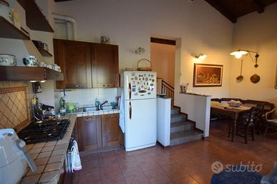 Val Luretta - PIOZZANO - Vendesi VILLETTA in posizione panoramica con giardino e PISCINA composta da ingresso in luminoso soggiorno con camino e cucina a vista da cui si accede al portico affacciato sulla zona piscina, 2 camere da letto con impianto condizionamento estivo, 2 bagni, ripostiglio, terrazzo e ulteriore portico oltre a piano seminterrato, collegato con scala interna, dotato di lavanderia, cantina, locale deposito e autorimessa di 22 mq. Euro 225.000.