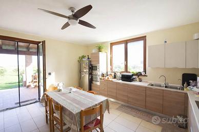 PODENZANO - LOCALITA' ALTOE' - vendesi VILLA INDIPENDENTE di recente costruzione (2010) con giardino circostante e cortile per accesso alle autorimesse per un totale di mq. 1.000. L'immobile è composto da un ingresso con portico, salone con camino, cucina abitabile con terrazzo coperto di mq. 22,00, 3 camere da letto, doppi servizi e scala di collegamento al piano interrato con ampie cantine ad uso taverna, locale tecnico, lavanderia e stireria. Completano la proprietà 2 ampie autorimesse con portoni sezionali. Ottime finiture con riscaldamento a pavimento, allarme, serramenti in legno-alluminio con zanzariere. Posizione tranquilla in lottizzazione con verde e parcheggi. In fase di certificazione. Eu.. 420.000