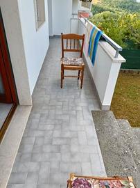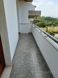 Penne, villa a schiera di testa con mq. 100 ca di giardino, disposta su tre livelli e cosi' composta: P. Rialzato. : ingresso soggiorno, bagno e balcone P. I: 3 camere, bagno e balcone P. S. I. : ambiente unico (garage) al grezzo sottotetto al grezzo completo di arredamento.
