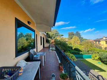 Marino, Via dei Laghi, nel contesto privato "La Loggetta" con sorveglianza diurna e struttura annessa di pertinenza per tutti i residenti con piscina e campi da tennis, proponiamo porzione di villa bifamiliare di mq. 260 circa, in perfetto stato manutentivo, articolata su due livelli fuori terra. La proprietà, giusta per gli amanti della privacy e del confort, che sono alla ricerca di una qualità abitativa decorosa, gode di un ottima luminosità, confortata da una doppia esposizione e da una piacevole panoramicità, oltretutto già divisa in due soluzioni abitative di mq. 130 cadauna circa, con il proprio ingresso indipendente. Al piano terra siamo accolti da un salone doppio con pratico soppalco di 30 mq. circa adibito a studio, cucina semi abitabile a vista, una camera matrimoniale con relativo servizio e grande cabina armadio, una cameretta con annessa comoda area spogliatoio, un secondo servizio e terrazza a livello di 30 mq. circa accessoriata di lavanderia. Il piano primo è composto da ampio soggiorno, una cucina abitabile, tre camere da letto di cui una soppalcata, doppi servizi, due balconi e terrazzino a livello. Completa il tutto un piccolo giardino di 70 mq. circa perfettamente curato e in parte pavimentato, che dona respiro a questa elegante, funzionale e confortevole abitazione. L'attuale distribuzione degli spazi interni ad oggi, permette e offre, qualora ce ne fosse la necessità, eventuali margini di personalizzazione e di miglioramento per un'adeguata vivibilità e un adattamento su misura alle proprie esigenze. L'immobile è proposto dalla D'Andrea Immobili ad Euro 469.000,00 Rif. 3.RICERCHIAMO PER CONTO DELLA NOSTRA SELEZIONATA CLIENTELA, IMMOBILI DI VARIE TIPOLOGIE E METRATURE, O INTERI COMPLESSI IMMOBILIARI, GARANTENDO CON SERIETA' E COMPETENZA, CHE CONTRADDISTINGUE LA D'ANDREA IMMOBILI DA ANNI, TEMPI RAPIDI E CONCRETI NEL VENDERE E LOCARE. RINGRAZIANDOVI SEMPRE PER L'ATTENZIONE CONCESSA SIAMO A COMP