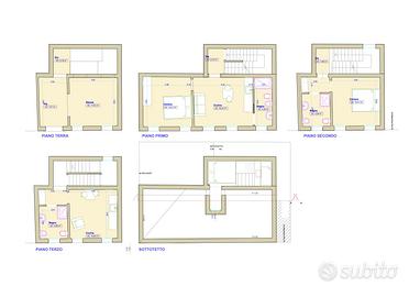 Casa di circa 130 mq rivolta a Sud , composta a piano terra ampio salone con acqua e luce, al piano primo salone cucina e bagno, al piano secondo camera e bagno, al piano terzo ulteriore camera e bagno, più soffitta.