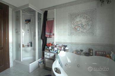 Proseguendo al primo piano troviamo uno spazioso appartamento di 132 mq con luminoso soggiorno dotato di camino ventilato, cucina abitabile, due camere da letto e due lussuosi servizi completi di vasca idromassaggio e doccia idrosauna. Anche qui, l'impianto di climatizzazione assicura un clima ideale tutto l'anno.