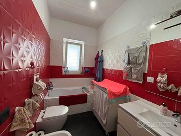 Al primo piano, due vani letto spaziosi e luminosi, mentre un vano adito a cabina armadio fornisce ampio spazio per riporre gli abiti. Il bagno è elegante e ben accessoriato. Il terrazzo calpestabile è il luogo perfetto per godere del sole e della vista sul mare, mentre il giardino offre uno spazio verde privato per rilassarsi.