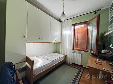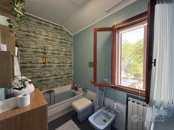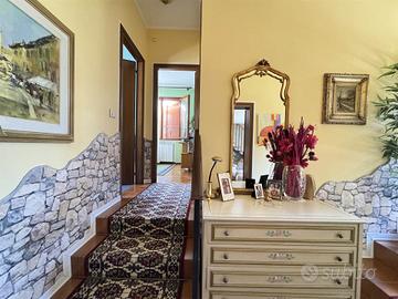 La prima unità abitativa, di circa 120 mq, è stata completamente ristrutturata e dispone di due ingressi indipendenti. Si sviluppa su più livelli e comprende tre camere da letto, di cui due matrimoniali, due bagni (uno dei quali attualmente adibito a lavanderia e bagno di servizio), un ampio soggiorno con camino in mattoni e finiture curate in ogni dettaglio.