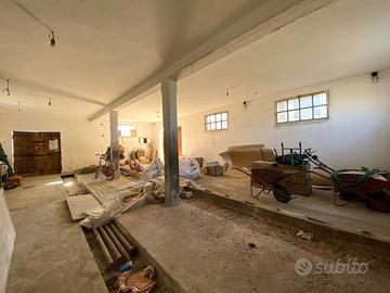IN ADERENZA ALL'ABITAZIONE UN FABBRICATO AD USO RICOVERO ATTREZZI, DISPOSTO SU DUE LIVELLI E COMPOSTO AL PIANO TERRA IN UNA STANZA DI 50 MQ, LAVANDERIA E CANTINA; AL PIANO PRIMO, UN'UNICA SALA DI 75 MQ; POSSIBILITA' D TRASFORMAZIONE IN ABITAZIONE.