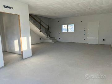 SALZANO, PROPONIAMO IN VENDITA PORZIONE DI TRIVILLA CENTRALE DI NUOVA COSTRUZIONE, DISPOSTA SU DUE LIVELLI E COMPOSTA AL PIANO TERRA DA INGRESSO SU SOGGIORNO COTTURA DI 50 MQ, CON AFFACCIO SUL GIARDINO, DISIMPEGNO, BAGNO E GARAGE COMUNICANTE DI 21 MQ; AL PIANO PRIMO, TROVIAMO LA ZONA NOTTE COMPOSTA DA CAMERA MATRIMONIALE, CAMERETTA, CAMERA DOPPIA, QUARTA CAMERA DA ADIBIRE A STANZA STUDIO/HOBBY CON POGGIOLO, DISIMPEGNO E BAGNO FINESTRATO.