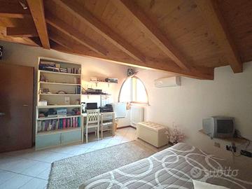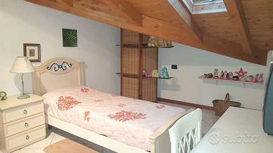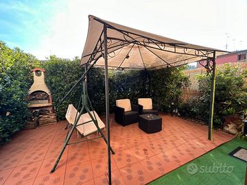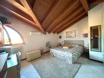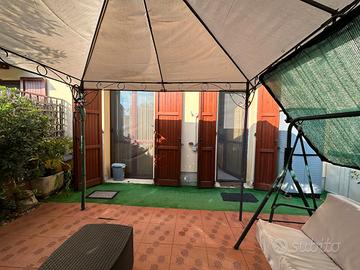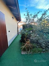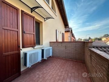 Rif. 5288 A Prato di Correggio, in strada chiusa, villetta a schiera di circa 150 mq, disposta su 3 livelli, di recente costruzione con ingresso indipendente e giardino privato, così composta: ingresso, ampia sala, cucina abitabile, verde privato attrezzato, bagno con antibagno e doccia; al primo piano camera matrimoniale, cameretta e terrazzo, bagno con vasca; al secondo piano due locali mansardati a uso camere matrimoniali. Garage di pertinenza con soppalco. Riscaldamento con caldaia autonoma a gas, aria condizionata, zanzariere, gazebo, barbecue, ecc.