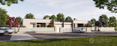 QUARTO - SPLENDIDA VILLA BIFAMILIARE MONOPIANO DI NUOVA REALIZZAZIONE composta da soggiorno con portico, cucina abitabile, tre camere da letto, doppi servizi, box doppio. Giardino. Ottimo capitolato. Possibilità di personalizzare le finiture.
