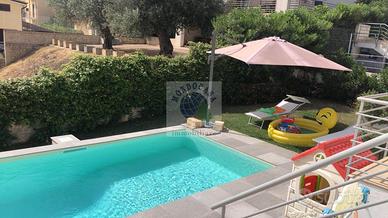 A soli 4 km dalla bellissima città di Noto (Siracusa - Sicilia) e dal suo caratteristico centro storico, esattamente nella ricercata e residenziale zona di San Corrado Fuori Le Mura, MONDOCASA IMMOBILIARE, Agenzia Fiaip in Siracusa, propone in vendita una splendida villa dal design moderno e funzionale, dotata di una grande piscina 6m x3m. Questa splendida proprietà, di nuova costruzione e in condizioni impeccabili, si sviluppa su due livelli e offre un ambiente elegante e accogliente. Si trova all'interno di un complesso residenziale costruito nel 2017 che ospita 6 ville in totale. La superficie dell'immobile, di circa 128 mq, è distribuita su 2 livelli, oltre il terrazzo soprastante, ampio e panoramico, accessibile tramite elegante scala interna in legno. La villa è così composta: al piano terra troviamo la zona giorno con ampio salone, cucina, una cameretta, lavanderia e bagno; tramite una bellissima scala in legno si accede al piano sottostante dove è ubicata la grande camera da letto matrimoniale con cabina armadio molto ampia ed un bagno privato con doccia. Valore aggiunto sono le spaziose verande esterne attrezzate in cui potrete accogliere i vostri ospiti per trascorrere piacevoli momenti di convivialità. Completano la proprietà un grande garage ed il giardino con la piscina. La villa è dotata di impianto di climatizzazione, termosifoni e impianto fotovoltaico da 6kw con 2 batterie di accumulo da 5kw (per un totale di 10kw).