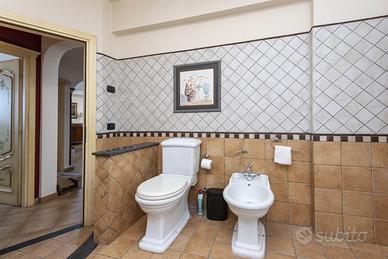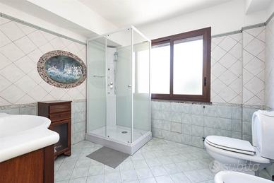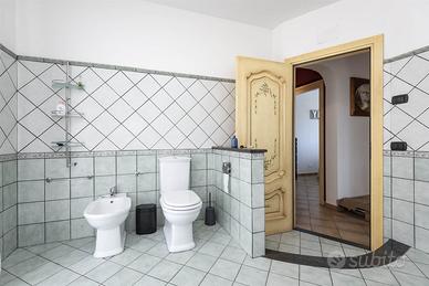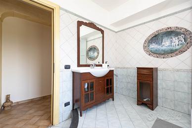 Il piano cantinato di 125 mq, suddiviso in tre ambienti con tre bagni e lavanderia, era stato progettato per ospitare una sauna privata.