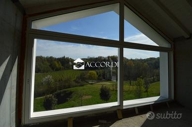 Il design della casa e la scelta delle ampie vetrate dialogano con le forme ed i colori dell' incantevole paesaggio collinare. l'ottima esposizione la rende una casa attenta alle problematiche ecologiche e mette in condizioni di poter completare a piacimento con tutte le tecnologie offerte sul mercato. Gli ampi spazi interni sono stati pensati per rispondere alle esigenze delle giovani famiglie e i loro ospiti.