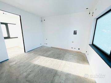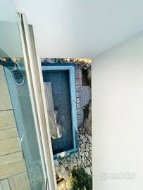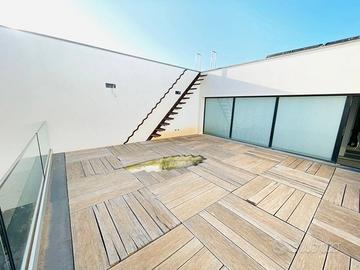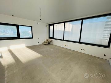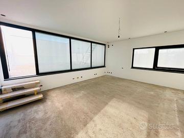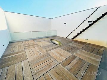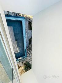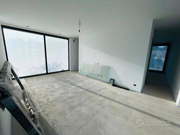 Al primo piano invece troviamo una camera matrimoniale, cucina, bagno, guardaroba e una zona giorno che si affaccia su una terrazza con vasca zen.