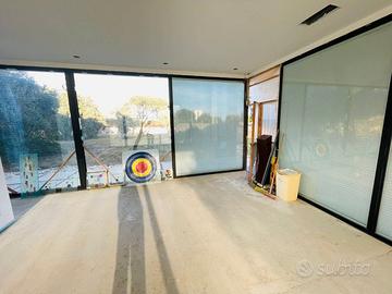 L'immobile sorge su un sistema di vespai ventilati di tipo igloo che permettono l'isolamento dal terreno, la proprietà di 320 mq è in cemento armato, una parte incastonata nella roccia.
