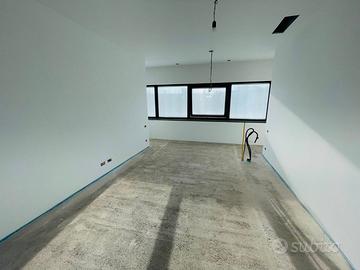 La finitura esterna dell'immobile è in calcestruzzo grezzo, gli infissi Saint-Gobain in acciaio a taglio termico con vetrocamera e tendine interne automatizzate, l'impianto termico è a pannelli radianti a pavimento alimentati da pannelli solari.