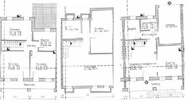 L'abitazione si sviluppa su tre piani, un interrato e due fuori terra. Ha una luminosa zona giorno open space con cucina/ soggiorno che si affaccia al giardino a sud, un bagno, una lavanderia e a nord vi è un garage singolo e due posti auto privati esterni all'abitazione. Al piano interrato troviamo un'ampia taverna, cantina , centrale termica, mentre al primo piano ci sono tre camere spaziose ( 1 matrimoniale e 2 doppie) di cui due con terrazzo e un ulteriore bagno; Presenti ben 2 canne fumarie per predisposizione stube per il riscaldamento. L'immobile è completo inoltre di impianto fotovoltaico da 3 Kw e predisposizione per impianto acqua solare.