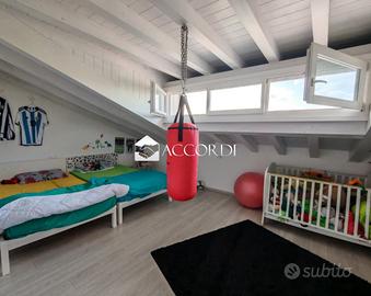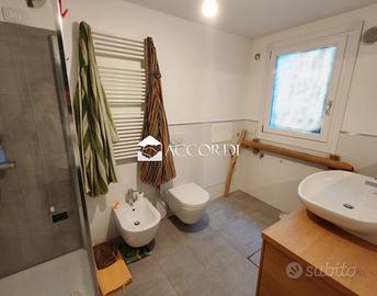 Vendesi in zona collinare nel comune di Maser, elegante porzione di bifamiliare che si sviluppa su tre piani. Al piano inferiore semiinterrato si trova garage, disimpegno/lavanderia, cantina, sottoscala, salendo al piano giorno vi è ingresso, cucina/soggiorno con una bella vista panoramica, e un bagno, mentre al piano notte vi sono due camere e una terza ampia stanza utilizzabile come camera e un bagno. Riscaldamento a pavimento a metano.