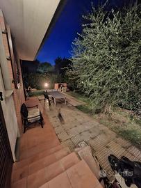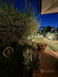Questa bifamiliare di ampia metratura (oltre 180 mq ) è situata in un'ottima posizione, con un accesso privato dal giardino che conduce al porticato. Il reparto giorno è caratterizzato da un ampio e luminoso soggiorno e da una cucina abitabile con accesso diretto al giardino, ideale per i momenti di relax all'aperto. Il reparto giorno è illuminato da grandi finestre con vista sul giardino.