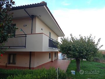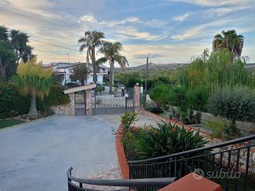 RIF. COD. D0390 - Sulla strada per Floridia, immersa nel verde di un'area di campagna ricca di proprietà stabilmente abitate, si propone in vendita un'ampia villa subito abitabile dotata di garage, terrazza panoramica e giardino esclusivo. La casa è libera su quattro lati, ha una metratura commerciale di 152 mq ed è inserita all'interno di un lotto di 1.500 ricco di piante ornamentali di pregiata qualità e alberi da frutto. L'accesso all'immobile avviene dalla grande veranda con vista aperta, posta al termine di un'elegante scala in muratura. Internamente la casa è composta da una comoda zona giorno formata da ampio salone e sala da pranzo con cucina. La zona notte è disimpegnata e composta da una spaziosa camera matrimoniale, una comoda cameretta, il bagno padronale e il doppio servizio. L'ampia balconata circonda la casa rendendo i suoi ambienti luminosi e ben ventilati. Un'ulteriore scala esterna in muratura permette di raggiungere la grande terrazza dalla quale è possibile godere di una meravigliosa vista panoramica. Un pratico garage di 39 mq e un vasto locale di sgombero con accesso dal porticato attiguo alla scala che conduce all'abitazione, completano la proprietà.