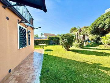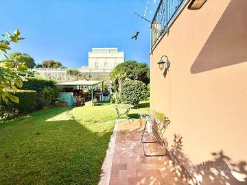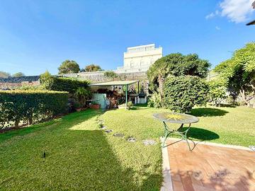 DB28 La villa, distribuita su tre livelli oltre il piano semi-interrato, offre una superficie complessiva di oltre 300 m² ed è circondata da circa 1000 m² di terreno, tra giardino, area parcheggio e orto. Gli spazi sono ampi, luminosi e curati, ideali per chi desidera vivere vicino al mare in un contesto residenziale tranquillo e riservato. DISTRIBUZIONE INTERNA Piano Terra Ingresso su ampio salone doppio con camino Cucina abitabile con accesso diretto al giardino Bagno di servizio Primo Piano Due camere da letto, di cui una suite padronale con bagno privato e cabina armadio Secondo bagno finestrato Terrazza a livello e balcone fronte strada Secondo Piano (mansardato) Mini appartamento indipendente con angolo cottura, bagno e ripostiglio Ideale come zona ospiti o studio privato Piano Semi-interrato Garage di 73 m² con accesso diretto alla villa SPAZI ESTERNI Giardino curato con prato inglese e area relax coperta Zona orto di circa 150 m² Ampia area parcheggio privata di circa 350 m² Terrazze panoramiche con scorci sul mare e sulla collina POSIZIONE La villa si trova a soli 200 metri dal mare e a pochi minuti dal centro di Aci Castello. La posizione garantisce tranquillità, privacy e allo stesso tempo la comodità dei servizi principali e delle suggestive passeggiate sul lungomare. Classe energetica: G ipe: tel.: