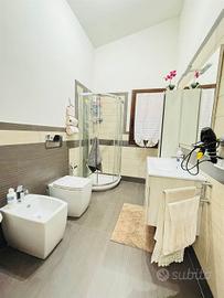 Entrando in casa si viene accolti da un ampio e luminoso salone, valorizzato da grandi finestre e da una porta finestra con affaccio diretto sul giardino, che rende l'ambiente particolarmente suggestivo. Sul lato opposto troviamo una cucina abitabile, anch'essa molto luminosa, dotata di porta finestra e finestra, con all'interno uno spazio lavanderia ben disimpegnato. Completa il piano terra un grande bagno con comoda vasca.