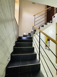 Una scala illuminata da luci di cortesia conduce al piano superiore, dedicato alla zona notte, dove troviamo due camerette, un bagno e la camera matrimoniale, arricchita da una cabina armadio. Proprio dalla camera padronale, tramite una porta finestra, si accede a uno splendido terrazzo a livello con vista aperta, perfetto per colazi