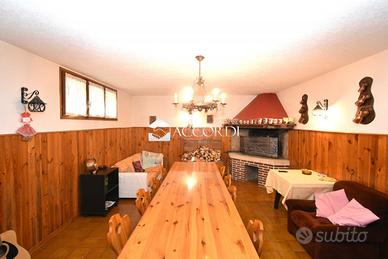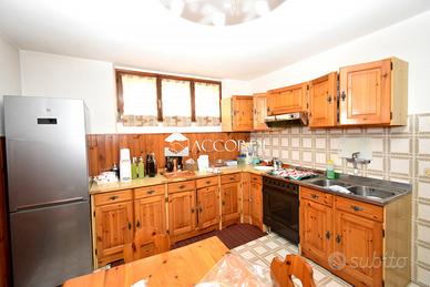L'immobile, sviluppato su due livelli, si compone al piano terra da soggiorno e sala pranzo dalle generose dimensioni, una grande cucina abitabile, due bagni e quattro camere; al piano interrato una taverna con camino in pietra, una cucina separata, wc, centrale termica, magazzino/lavanderia e garage doppio.
