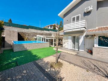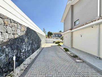 GL368 RIF:GL368. VILLA SINGOLA PARI AL NUOVO (costruzione 2020). A Nicolosi, nel centralissimo Viale della Regione, all'interno di un residence privato e signorile, proponiamo la vendita di questa villa singola, LIBERA SU TUTTI E 4 I LATI, suddivisa in due livelli, oltre giardino, garage, veranda e PISCINA. La villa è stata costruita nel 2020 e abitata per pochissimo. Ha una superficie interna di 158 mq e circa 800 Mq esterni. L'interno è composto dal piano terra adibito a zona giorno con ampio salone, cucina abitabile con due ambienti uniti, bagno e lavanderia. Attraverso le eleganti scale, si sale al piano superiore, ove sono presenti due grandi camere da letto, bagno di rappresentanza e cabina armadio. Le rifiniture sono di pregio. Tutti i materiali utilizzati sono stati scelti singolarmente, extra-capitolato. Una caratteristica importante è per esempio il riscaldamento a pavimento, oltre le tende da sole automatizzate poste sulla tettoia, l'allarme, climatizzatori, zanzariere, copertura invernale per piscina, garage con apertura automatica e molto altro. E come se non bastasse all'interno del giardino d'inverno, vi è una cucina in muratura e un barbecue. In poche parole, tutto quello che hai sempre cercato è racchiuso in questo immobile. Quindi cosa aspetti? Chiama subito per fissare un appuntamento! tel.: