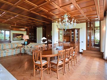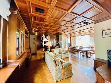 Il compendio immobiliare è così formato: Villa padronale di 1200 mq con ingresso soggiorno con ampie vetrate da cui si può ammirare una vista spettacolare del parco, cucina abitabile studio 7 camere e 7 bagni.