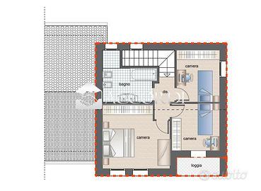 L'abitazione si sviluppa su due livelli: al piano terra ci accoglie un ampio open space (entrata e soggiorno + cucina), bagno, c.t. e lavanderia, ripostiglio; garage singolo con chiusura basculante elettrico. Al piano superiore, tutto mansardato e travato in legno chiaro (vedi foto) troviamo un ampia camera matrimoniale con terrazzo abitabile, due camere singole, un bagno molto ampio con predisposizione per doccia doppia (lo spazio consente eventualmente di installare una vasca standing alone anziche la doccia doppia) anch'esso mansardato, travato e dotato di velux con telecomando e sensore. Giardino privato con possibilità di ottenere ulteriori posti auto coperti installando una pompeiana.