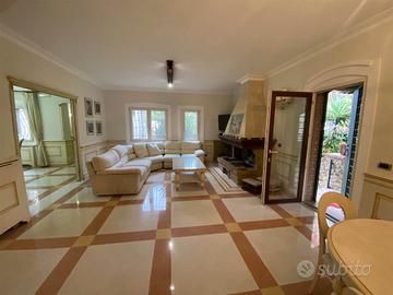 Catanzaro Lido, Viale Magna Grecia, in posizione riservata adiacente le porte della cittadina marina, proponiamo in vendita prestigiosa villa SINGOLA con ampio giardino, portico e garage. La villa è stata costruita dando priorità oltre che all'estetica, alla funzionalità ed al risparmio energetico ed è stato curato ogni dettaglio, dal design moderno alle boiserie arricchite da cornici. All'interno è costituita da: ingresso, ampio e luminoso salone, soggiorno con incantevole caminetto, cucina abitabile con ampia dispensa, due camere, due bagni, lavanderia, ripostiglio ed accesso diretto al portico al piano terra; un'elegante scala, che fa sembrare una naturale continuazione del parquet a terra, ci conduce al piano superiore, dove veniamo accolti da uno spazio funzionale prima di entrare nel vivo della zona notte; qui troviamo la grandissima camera padronale con bagno "en suite" con climatizzatore, vasca idromassaggio, box doccia, ampia cabina armadio ed accesso al balcone, tre camere da letto, cabina armadio e bagno con box doccia. Dotato di riscaldamento autonomo a gas metano, climatizzatori inverter caldo/freddo, zanzariere, impianto di video sorveglianza, impianto di irrigazione, illuminazione esterna, autoclave e pannelli fotovoltaici. Completano la proprietà un garage coperto di circa 100 mq, un forno a legna ed un giardino molto curato di circa 2000 mq il tutto recintato e delimitato da cancello automatizzato. Per info e appuntamenti: -
