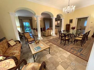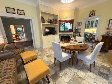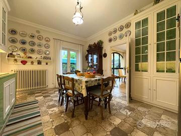 Al piano terra si trovano due saloni di rappresentanza ed una sala da pranzo importante, perfetti per accogliere ospiti con eleganza, ingresso scenografico, cucina abitabile, cucina di servizio, dispensa, due bagni, ripostiglio, due caminetti e meraviglioso portico.