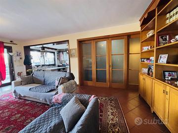 Salendo al primo piano troviamo la zona notte con tre camere da letto, di cui una con bagno privato, e ulteriori due bagni. Il secondo piano, invece, ospita un appartamento con ingresso indipendente e una mansarda sovrastante, uno spazio versatile di 70 mq con pavimentazione in parquet, perfetto come studio, area relax o ulteriore zona notte.