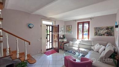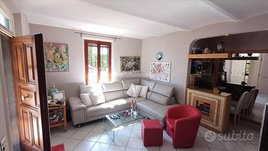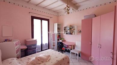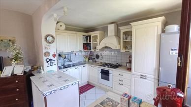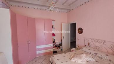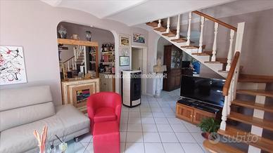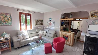 Il secondo appartamento dispone al piano terra di ingresso e cucina/pranzo con stufa a pellet, soggiorno con caminetto; al piano primo (salendo la scala presente in soggiorno in ferro e legno) dispone di due camere matrimoniali (di cui una con balcone), camera singola e bagno con vasca.