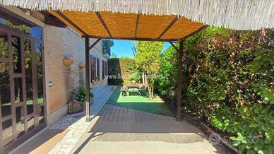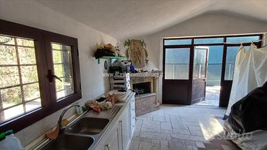 Inoltre è presente una costruzione staccata adibita ad autorimessa (mq 47) con caminetto e zona lavanderia/taverna ed un ripostiglio.