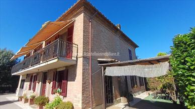 CHIUSI (SI), loc Montallese ad 8 km dal casello autostradale A1 di Chiusi/Chianciano Terme e 9 km dalla stazione ferroviaria di Chiusi, vendesi villa in buone condizioni e suddivisa in due appartamenti indipendenti. Giardino, orto ed ogni comodità. Luminosa ed accogliente. La superficie complessiva catastale dei due appartamenti è di mq 131 + mq 156, mentre per le autorimesse mq 47 + mq 24 e giardino ed orto per complessivi circa mq 1000 con pozzo artesiano.