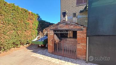 Al piano terra sono presenti anche un autorimessa (di mq 24) ed una cantina, mentre in adiacenza al fabbricato stesso sull'angolo ad ovest sono presenti due ripostigli ed un forno a legna.