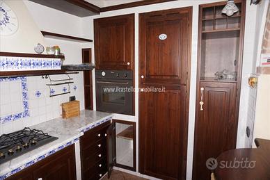L'appartamento più grande (circa mq 90) ha accesso indipendente al piano terra, soggiorno/pranzo con caminetto, cucina, bagno e scala di accesso al piano superiore dove insiste una camera matrimoniale, cameretta e bagno. L'appartamento più piccolo (mq 58 circa) ha acceso da scala esterna, si trova al piano primo e dispone di ingresso/soggiorno con stufa a legna, cucina/pranzo, camera matrimoniale e bagno. Al piano terra dispone di garage (per piccole auto) d circa mq 18 e cantina della superficie di circa mq 10.